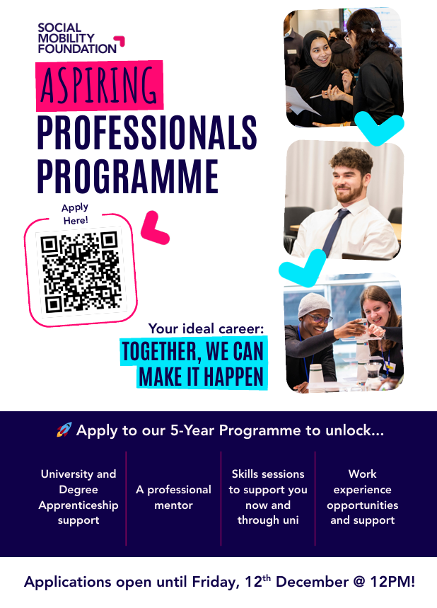 Please follow the link to see if your young person or someone you know is eligible The Aspiring Professionals Programme | Students